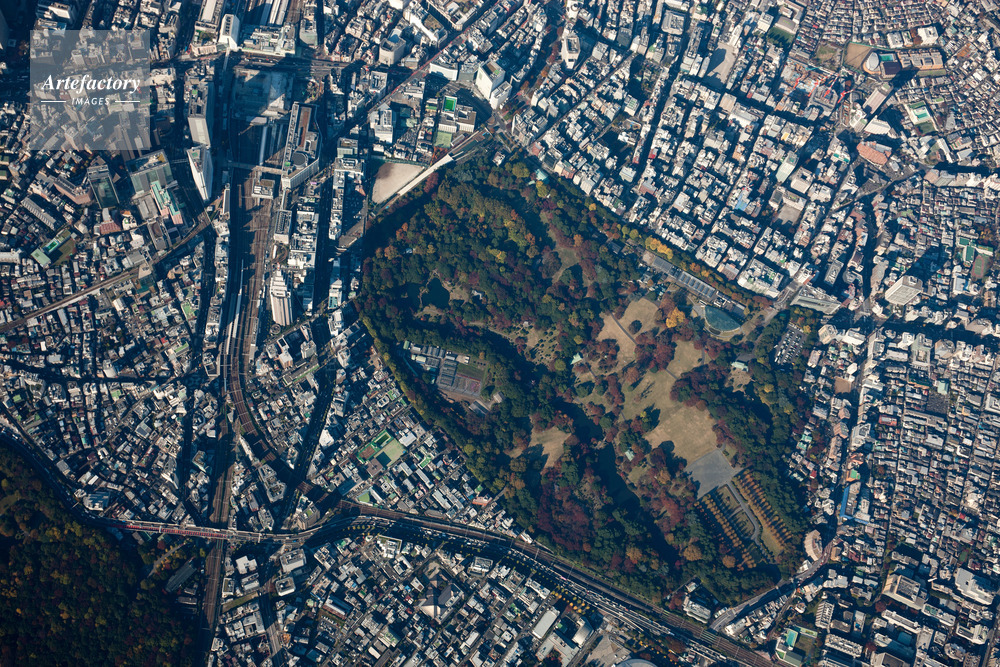 | 作品タイトル | 紅葉の新宿御苑、新宿駅、代々木駅周辺(垂直撮影3,000m) | モデルリリース | なし | |