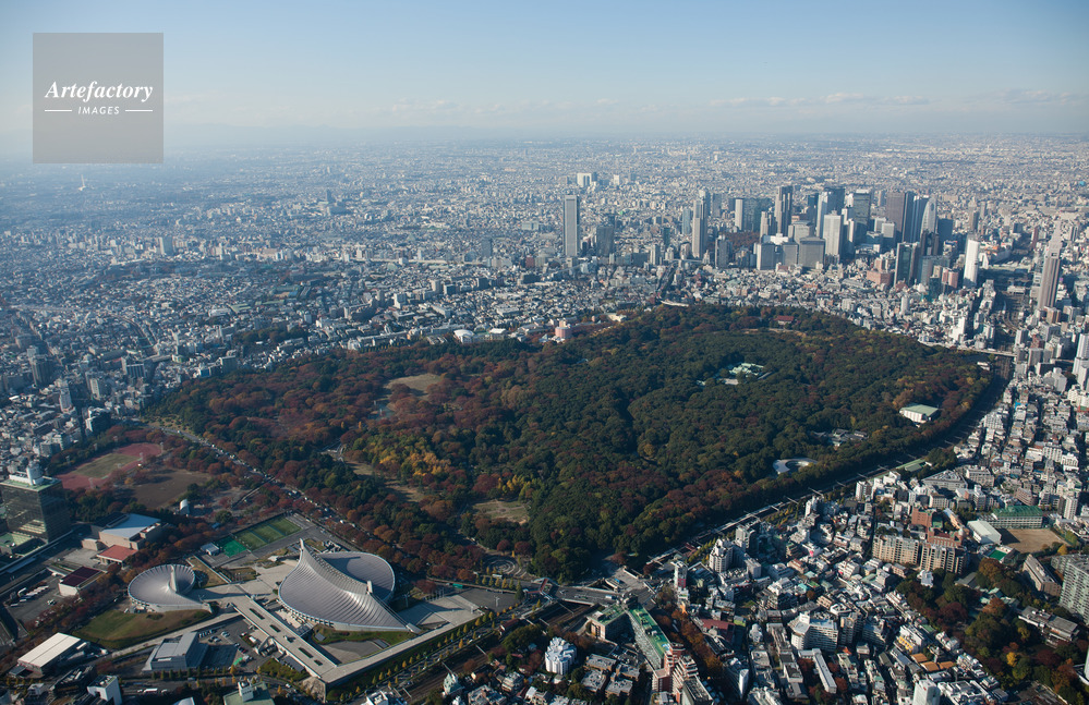 | 作品タイトル | 原宿駅と紅葉の代々木公園と新宿駅とビル群 | モデルリリース | なし | |
