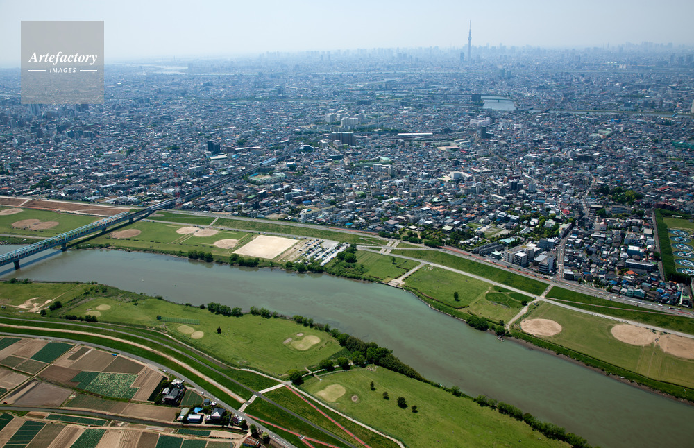 | 作品タイトル | 矢切の渡し(江戸川)より柴又帝釈天と都心方面 | モデルリリース | なし | |