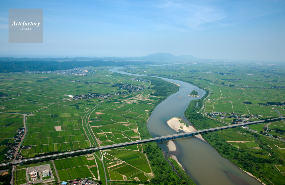 | 作品タイトル | 信濃川(北陸自動車道,信濃川橋付近)より越後平野と弥彦山 | モデルリリース | なし | |