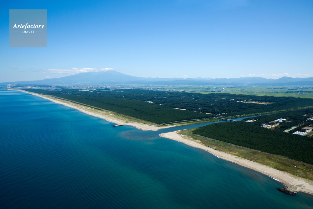 | 作品タイトル | 庄内の海岸線と防風林より庄内平野と鳥海山(中央赤川河口) | モデルリリース | なし | |