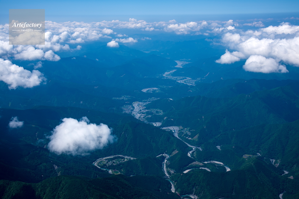 | 作品タイトル | 大井川と蛇行(寸又峡,奥泉駅,大井川鉄道より河口方面) | モデルリリース | なし | |