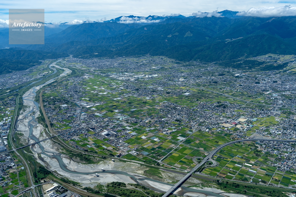| 作品タイトル | 釜無川より南アルプス市の果樹園と街並み | モデルリリース | なし | |