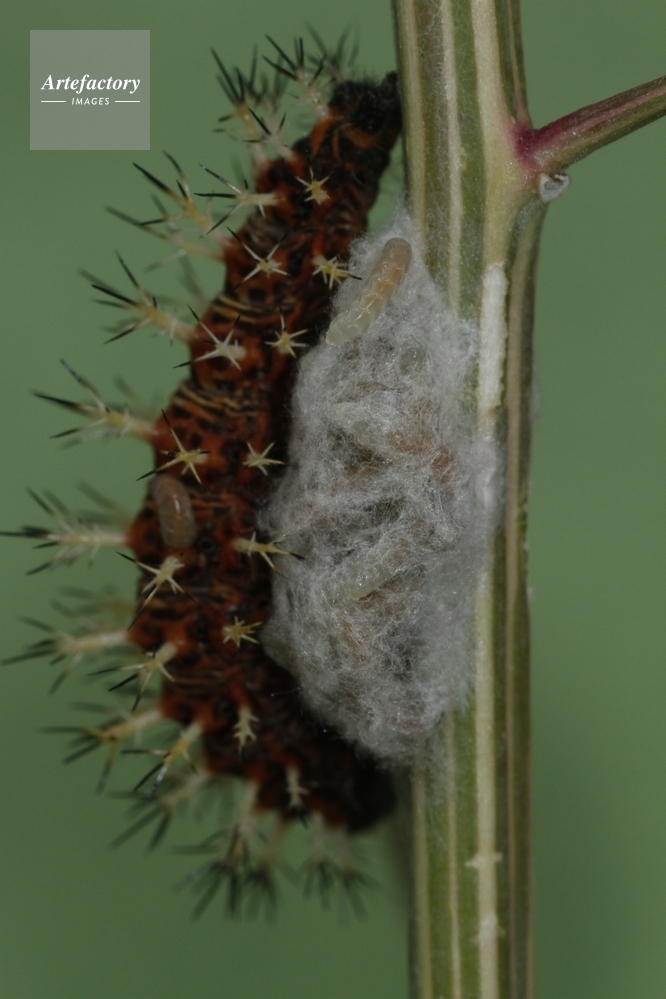 | 作品タイトル | 寄生蜂がルリタテハから出て繭を作る | モデルリリース | なし | |