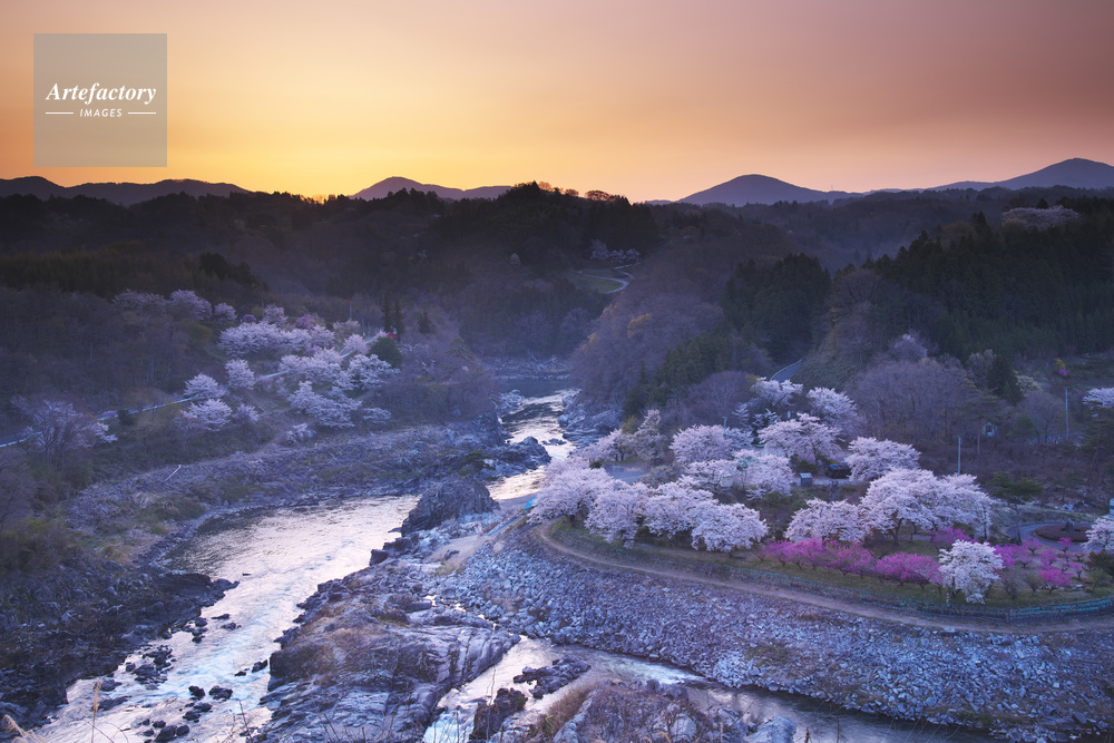 | 作品タイトル | 稚児舞台公園の桜と阿武隈川の朝 | モデルリリース | なし | |