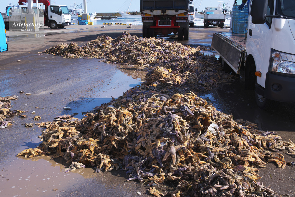 | 作品タイトル | 尾岱沼漁港のホタテ網にかかったヒトデ | モデルリリース | なし | |
