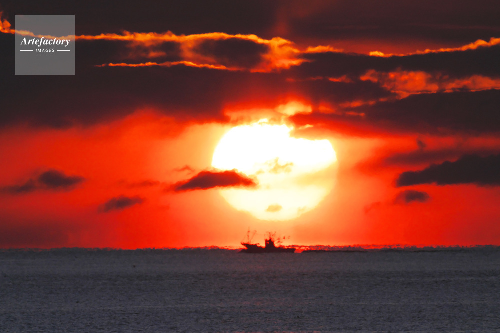 | 作品タイトル | 日の出と海(太平洋)と漁船 | モデルリリース | なし | |