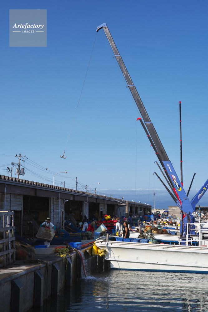 | 作品タイトル | 臼谷漁港の養殖ホタテの作業風景 | モデルリリース | なし | |