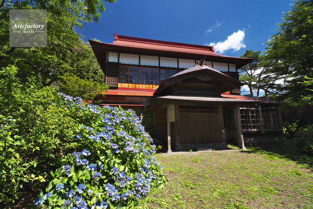 | 作品タイトル | 開拓記念館庭園の迎賓館とアジサイ | モデルリリース | なし | |