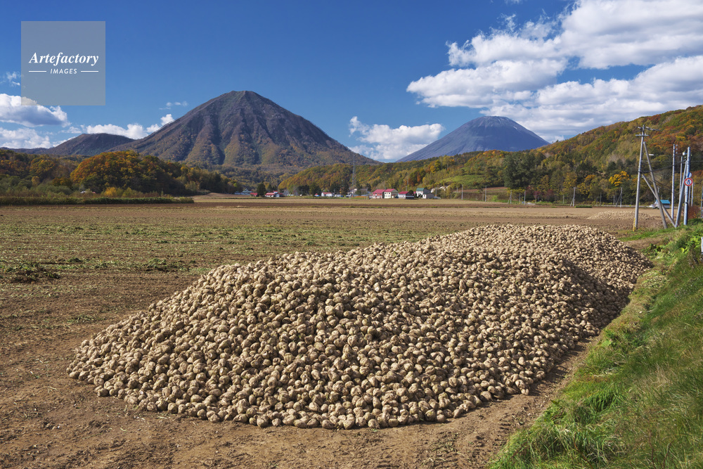 | 作品タイトル | ビートの山積みと尻別岳と羊蹄山 | モデルリリース | なし | |