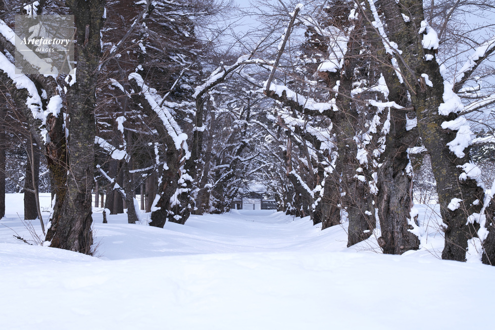 | 作品タイトル | 戸切地陣屋跡の桜の木と雪の道 | モデルリリース | なし | |