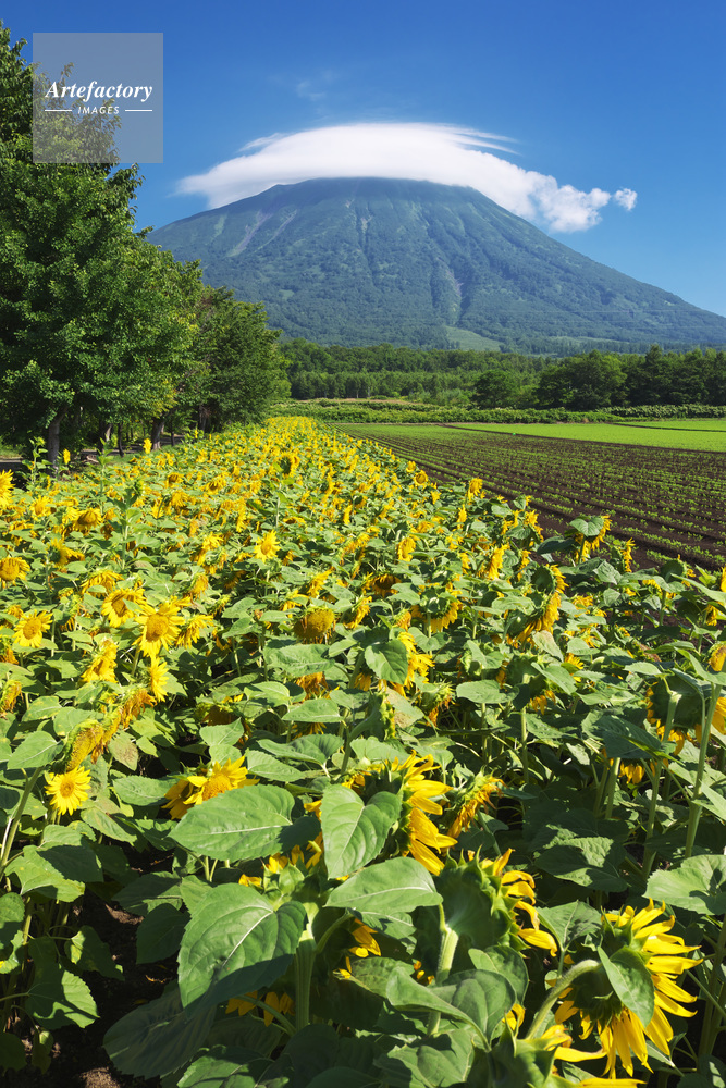 | 作品タイトル | 真狩神社のヒマワリ畑と羊蹄山とかさ雲 | モデルリリース | なし | |