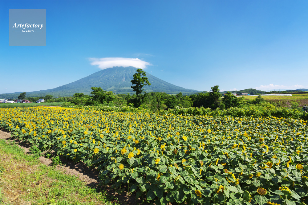 | 作品タイトル | ヒマワリ畑と羊蹄山とかさ雲 | モデルリリース | なし | |