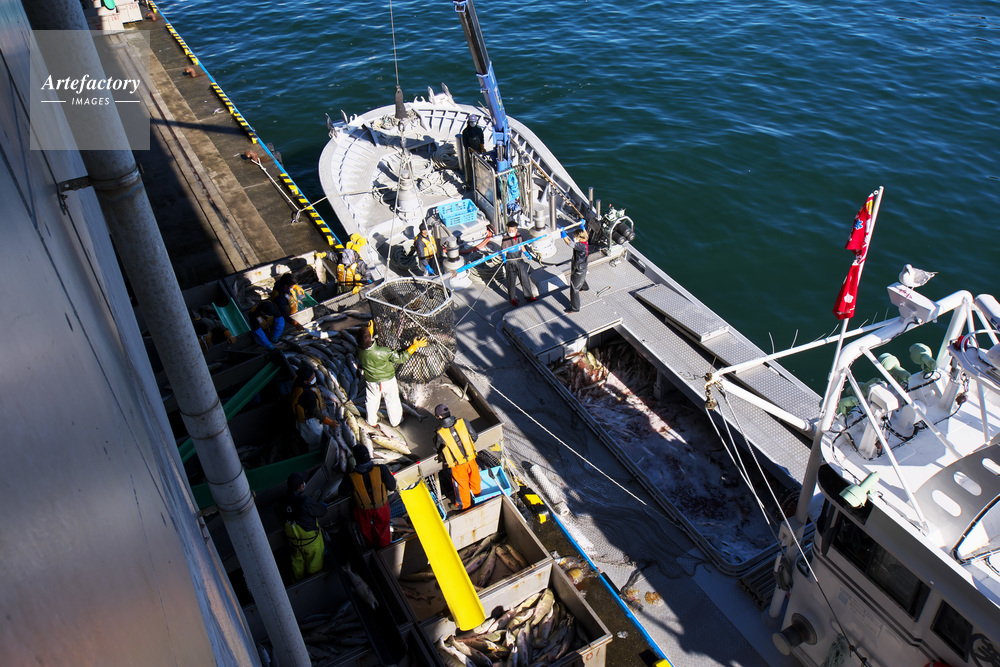 | 作品タイトル | ウトロ漁港のサケの水揚げ作業 | モデルリリース | なし | |
