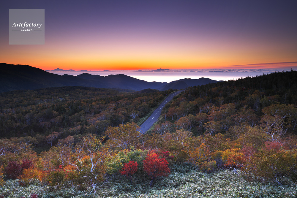| 作品タイトル | 知床峠付近より望む国後島の朝と知床横断道路と紅葉 | モデルリリース | なし | |