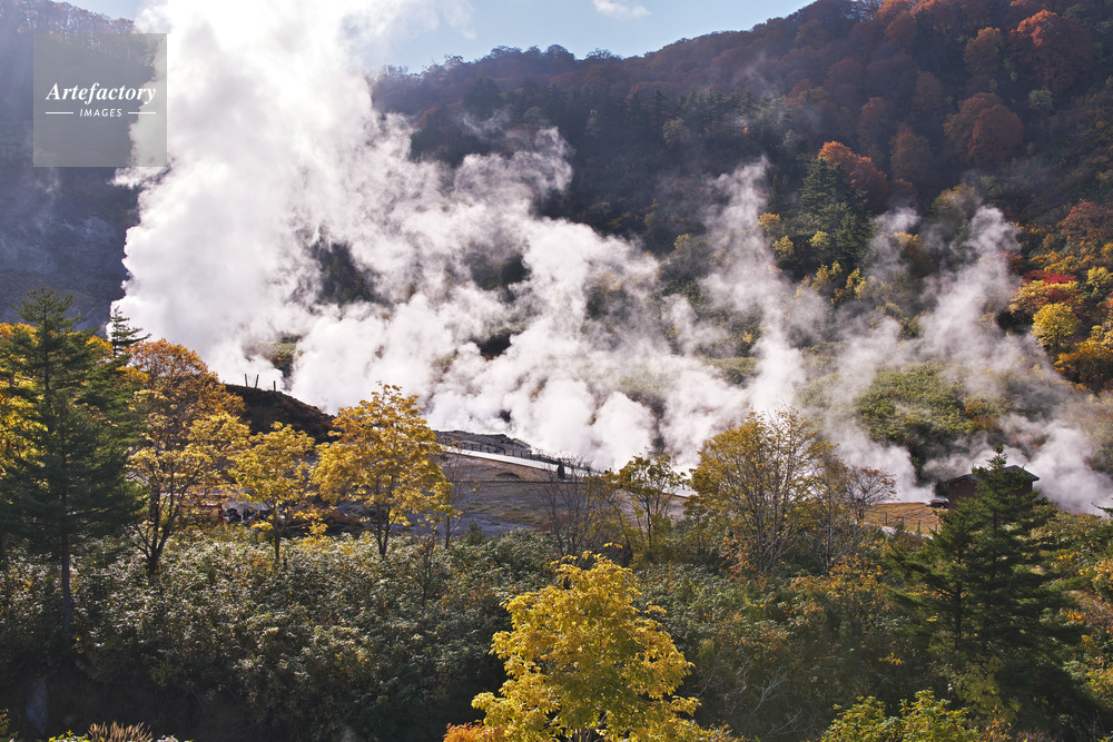 | 作品タイトル | 玉川温泉の噴煙と紅葉 | モデルリリース | なし | |
