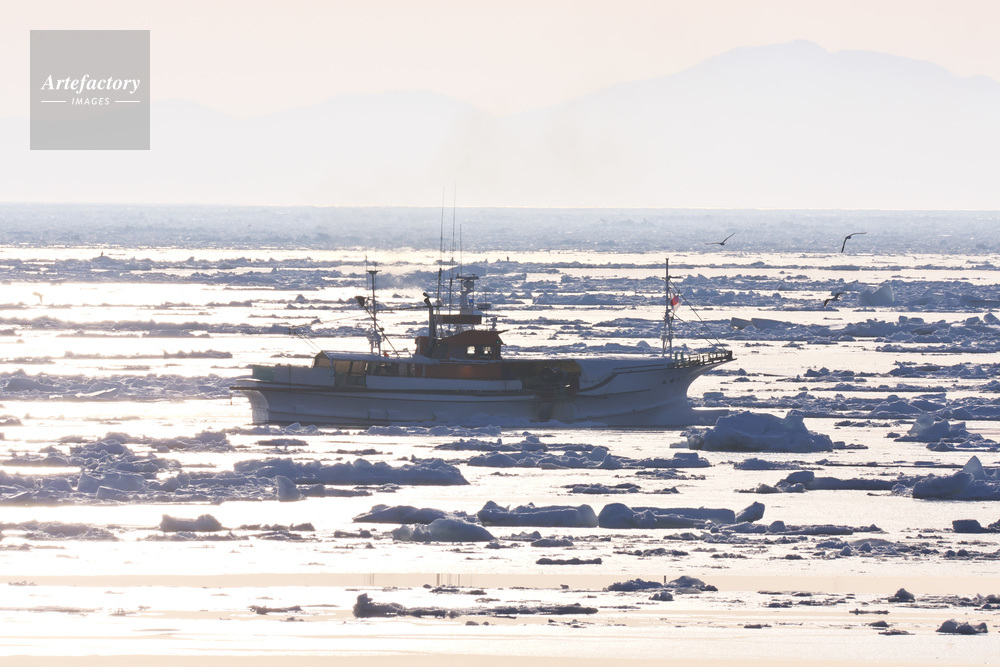 | 作品タイトル | 朝の流氷とスケソウ漁船 | モデルリリース | なし | |