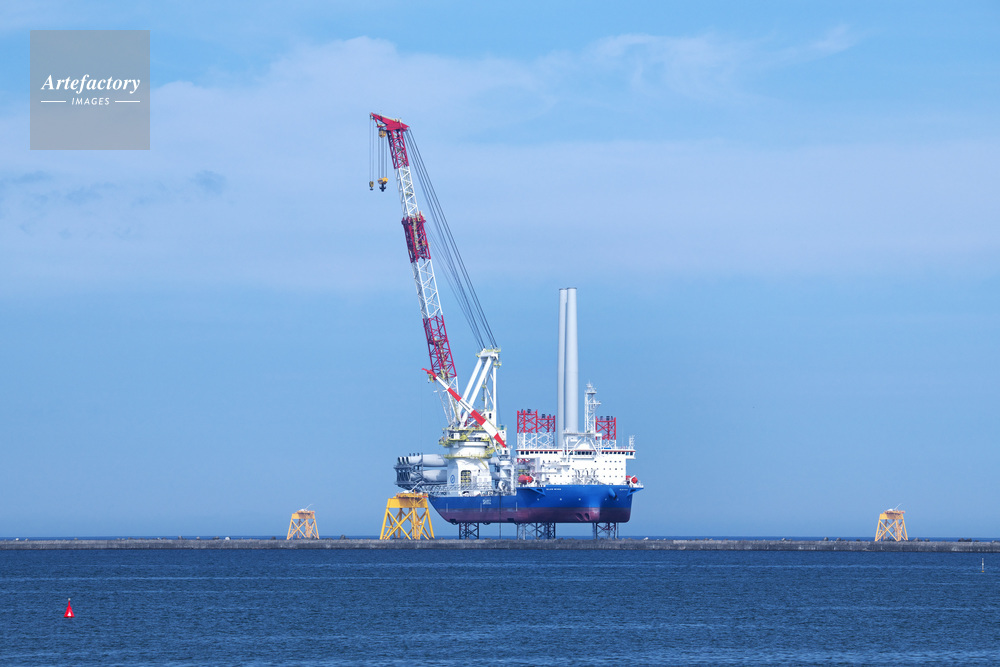 | 作品タイトル | 石狩湾新港沖の船体をジャッキアップした洋上風力発電の設置作業 | モデルリリース | なし | |