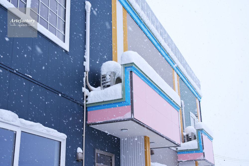 | 作品タイトル | 雪の住宅(アパート)とエアコン外部ユニット | モデルリリース | なし | |