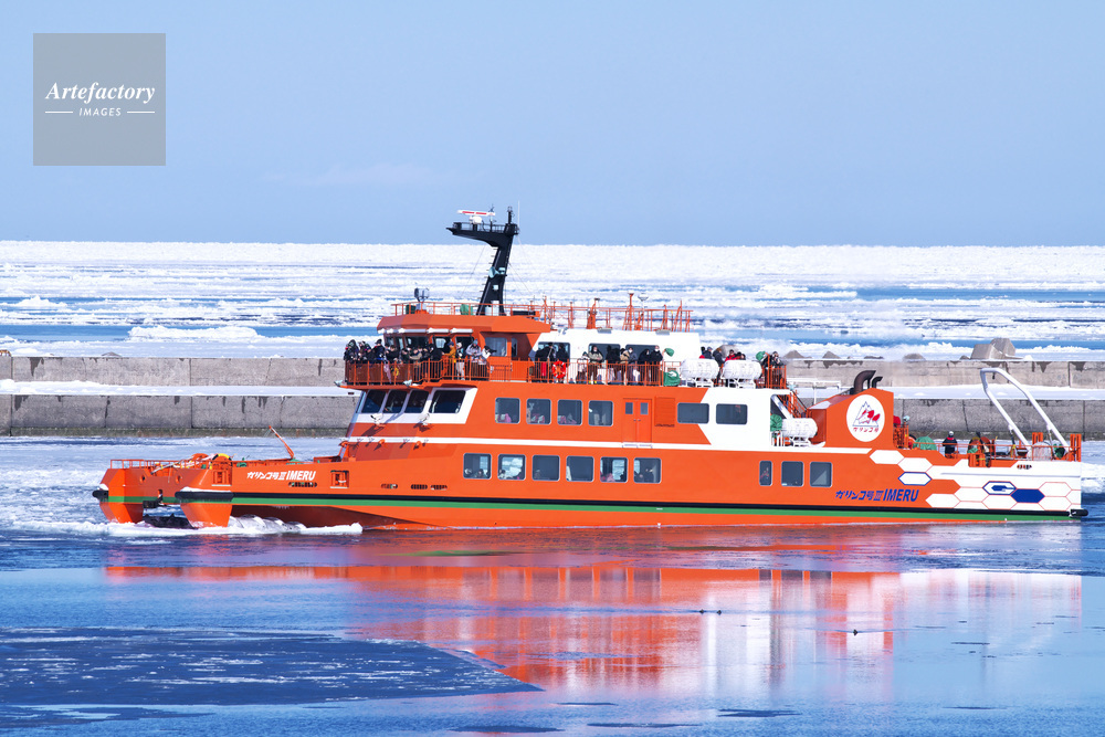| 作品タイトル | ガリンコ号? IMERUと流氷と紋別港 | モデルリリース | なし | |