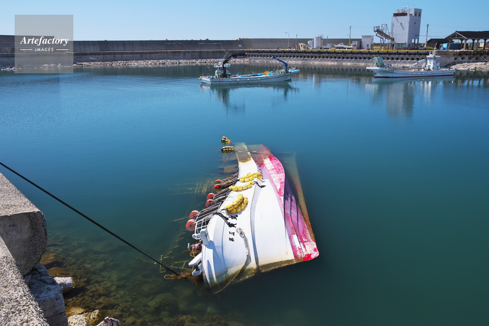 | 作品タイトル | 能登半島地震 鹿磯漁港の沈没した漁船 | モデルリリース | なし | |