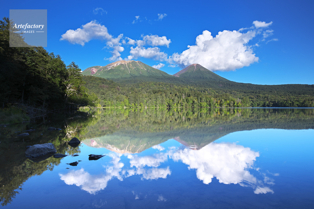 | 作品タイトル | オンネトーと雌阿寒岳(左)と阿寒富士(右)と雲 | モデルリリース | なし | |
