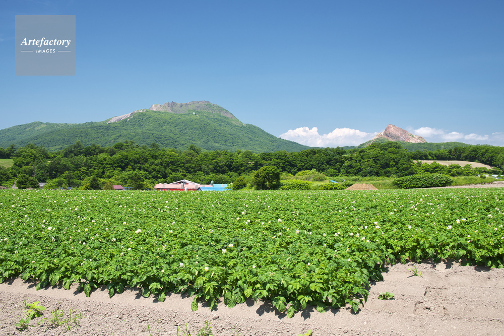 | 作品タイトル | 有珠山と昭和新山(右)とジャガイモの花 | モデルリリース | なし | |