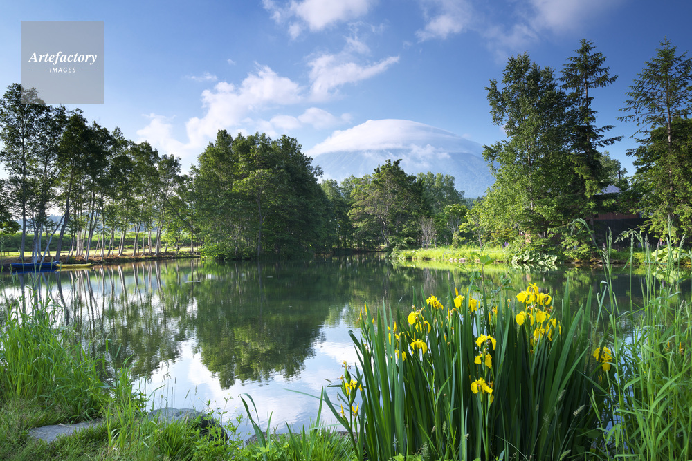 | 作品タイトル | 羊蹄姿見池と羊蹄山とキショウブ | モデルリリース | なし | |