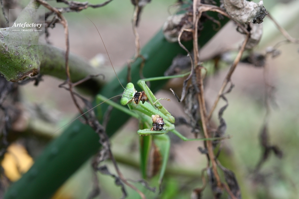| 作品タイトル | 獲物を食べるオオカマキリ | モデルリリース | なし | |