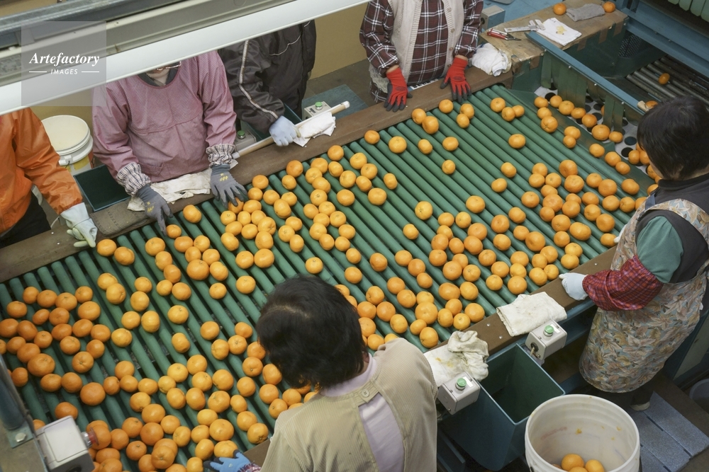 | 作品タイトル | ミカンの選果場、選別作業 | モデルリリース | なし | |