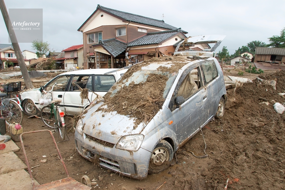 | 作品タイトル | 豪雨の被害、泥に埋まった自家用車 | モデルリリース | なし | |