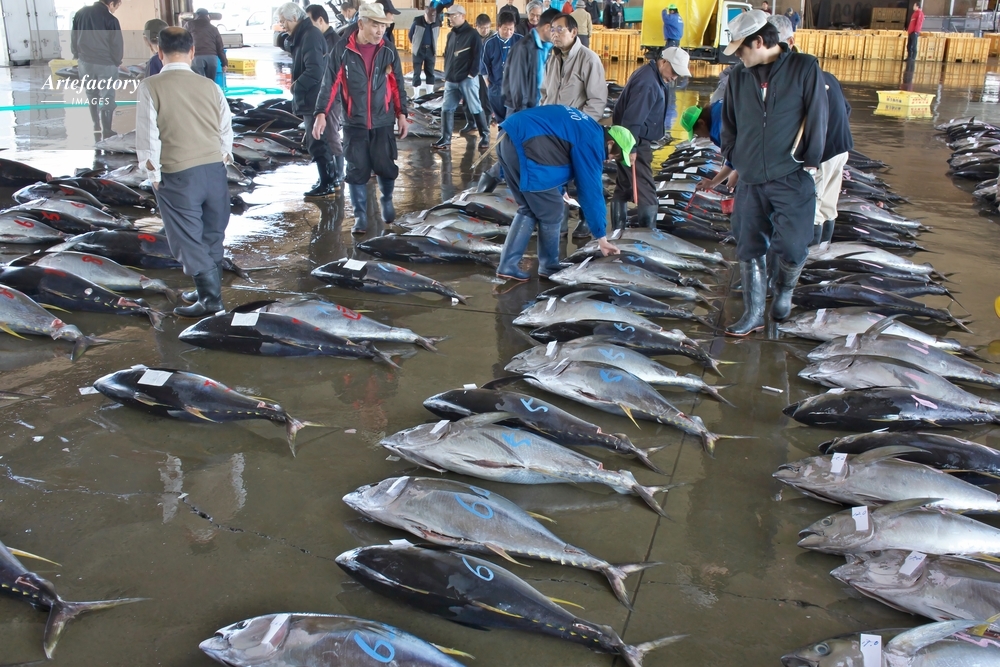 | 作品タイトル | 銚子漁港、水揚げされたマグロ、競り | モデルリリース | なし | |