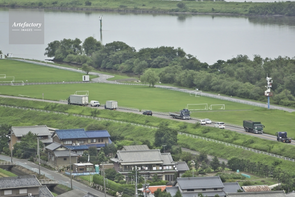 | 作品タイトル | 長良川、住宅と堤防を通る車両 | モデルリリース | なし | |