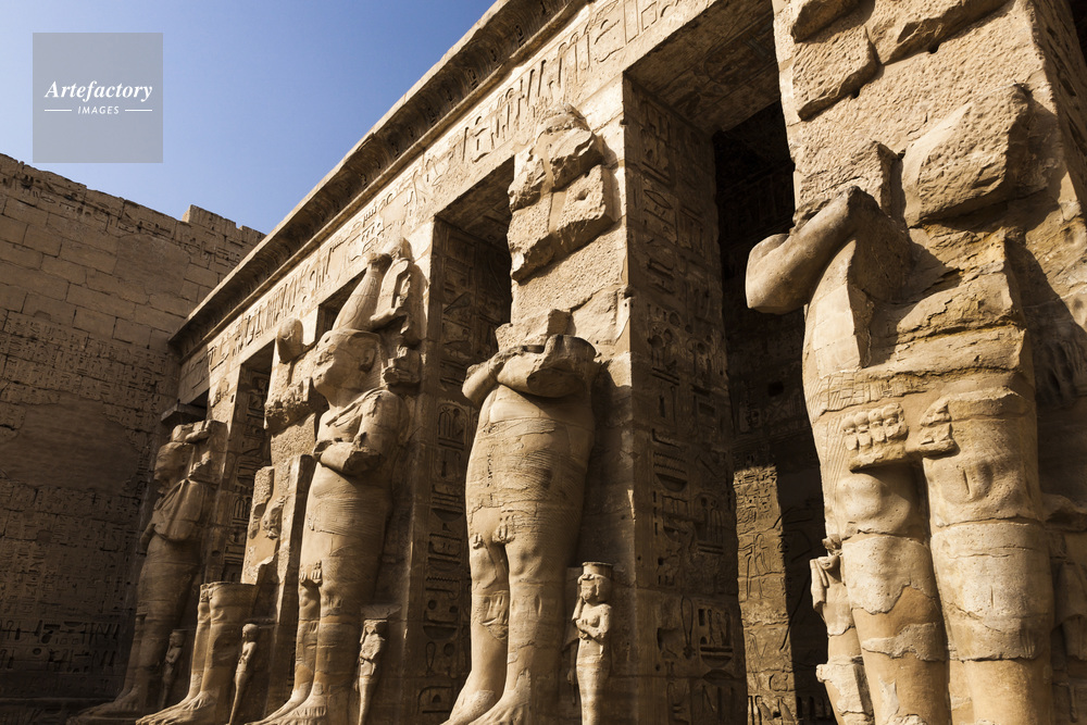 | キャプション | ラムセス3世葬祭殿 メディネット・ハブ 中庭 彫像 列柱 世界遺産 古代都市テーベとその墓地遺跡 | 制限事項 | ||