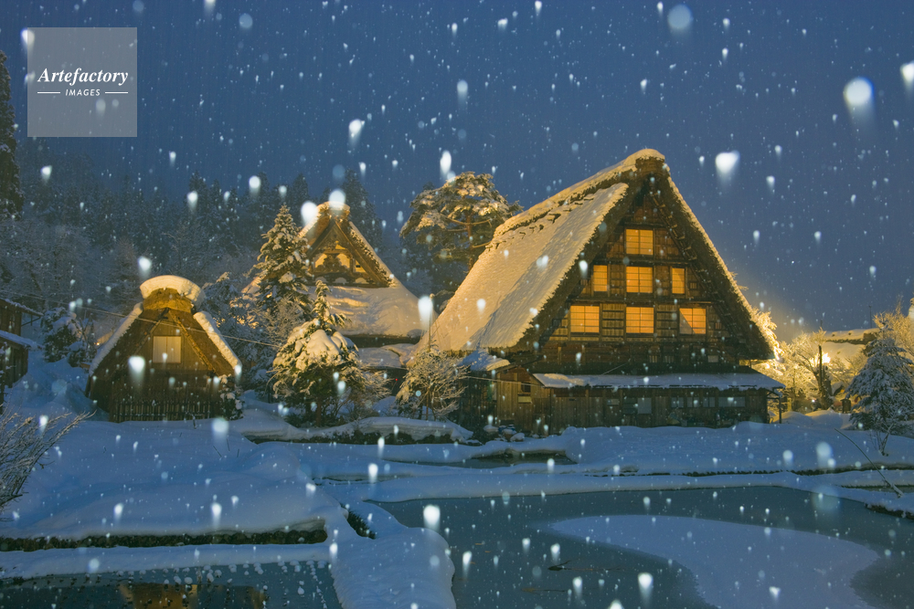 | 作品タイトル | 雪の白川郷合掌造りのライトアップ | モデルリリース | なし | |
