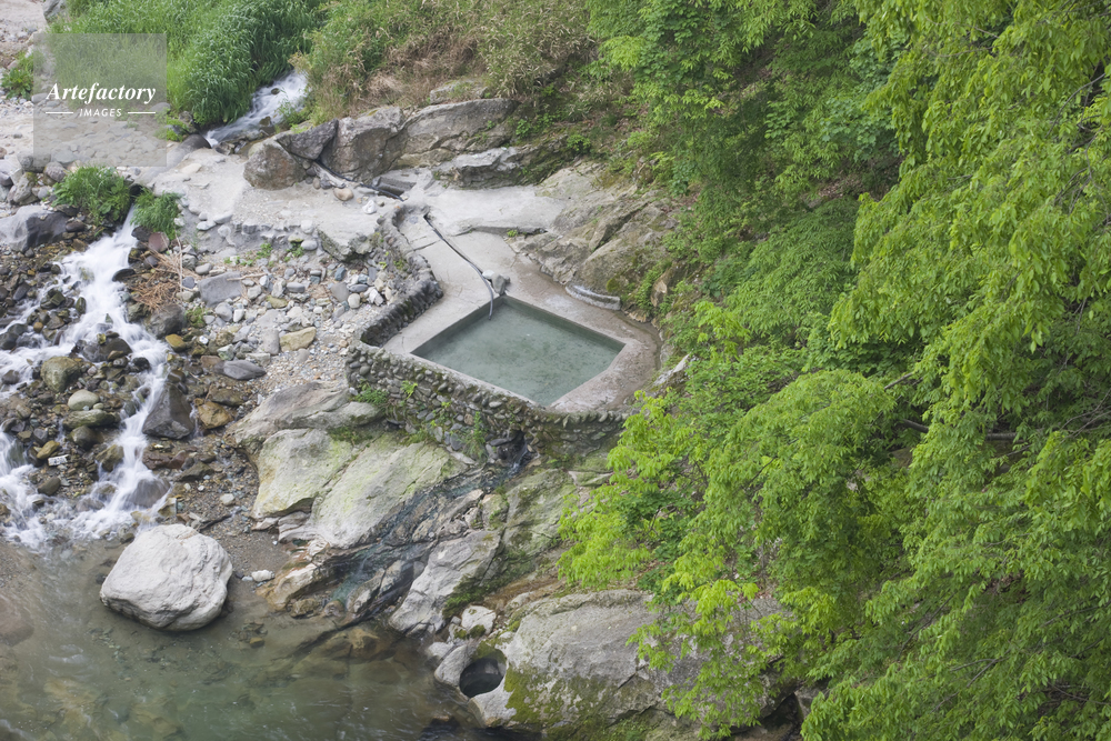 | 作品タイトル | 新緑の湯野上温泉の露天風呂と阿賀川 | モデルリリース | なし | |