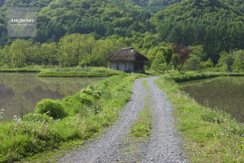 | 作品タイトル | 道と新緑の水田と小屋 | モデルリリース | なし | |