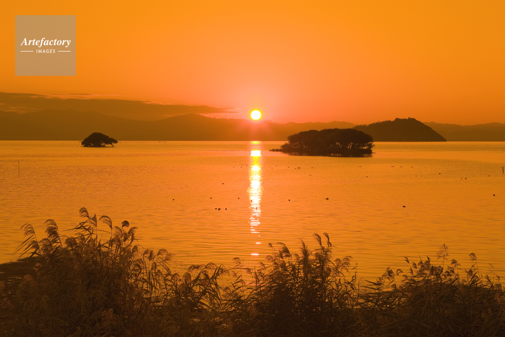 | 作品タイトル | 琵琶湖と竹生島とヨシと夕日 | モデルリリース | なし | |