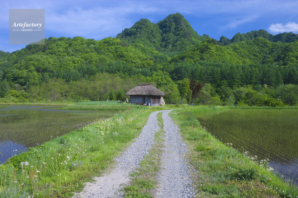 | 作品タイトル | 道と茅葺小屋と田 | モデルリリース | なし | |