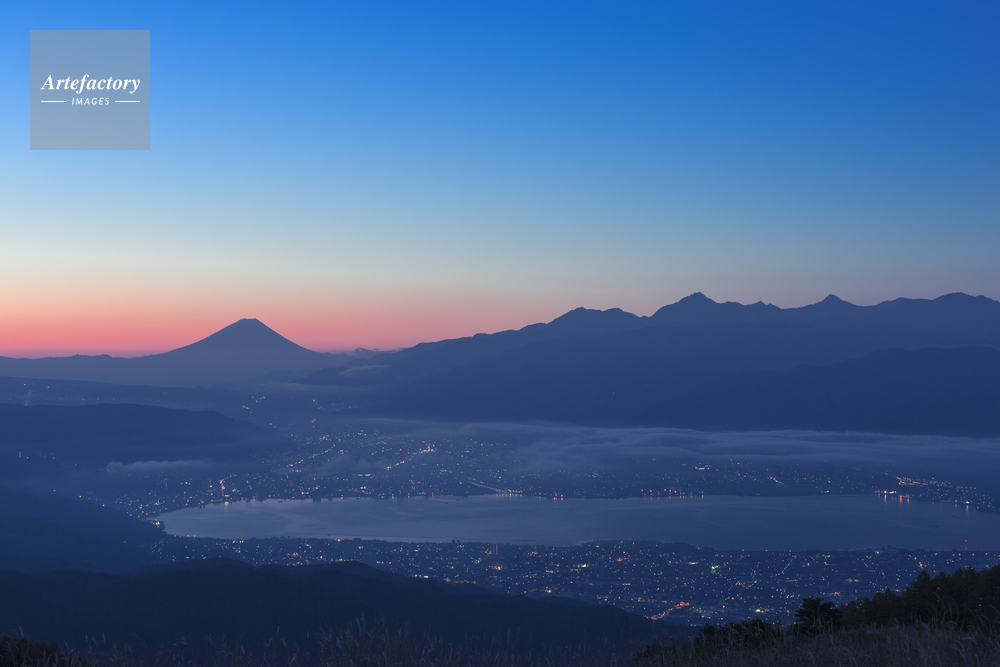 | 作品タイトル | 朝焼けの富士山と諏訪湖 | モデルリリース | なし | |