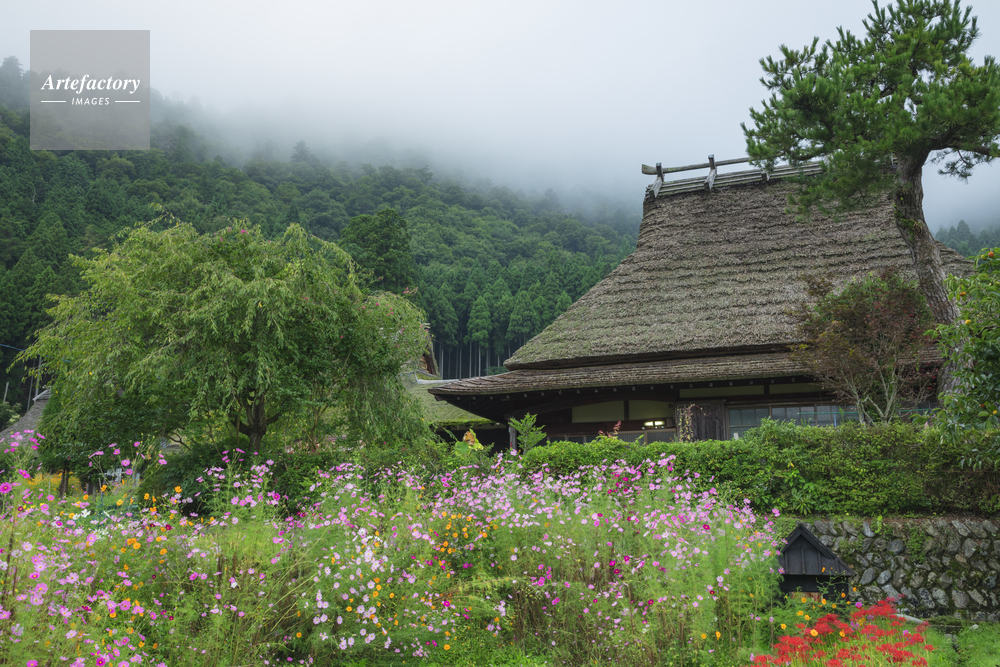 | 作品タイトル | コスモス咲く美山かやぶきの里 | モデルリリース | なし | |