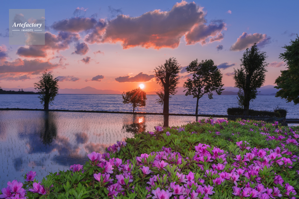| 作品タイトル | 朝日に映える琵琶湖とツツジ | モデルリリース | なし | |