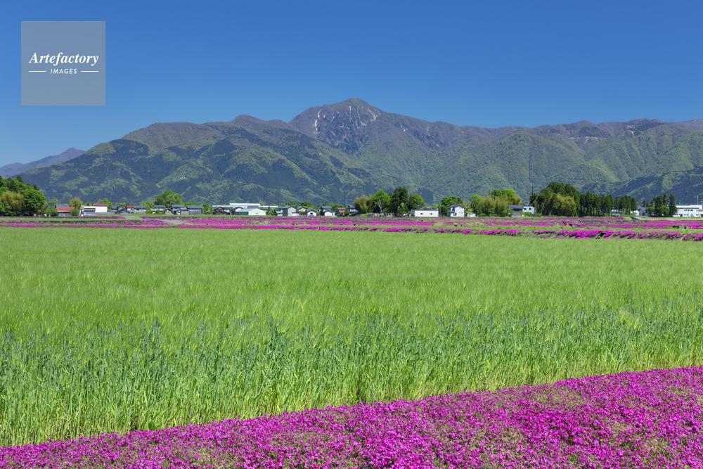 | 作品タイトル | 水田とシバザクラと荒島岳 | モデルリリース | なし | |