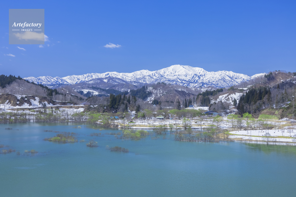 | 作品タイトル | 白川湖の水没林と雪の飯豊連峰 | モデルリリース | なし | |