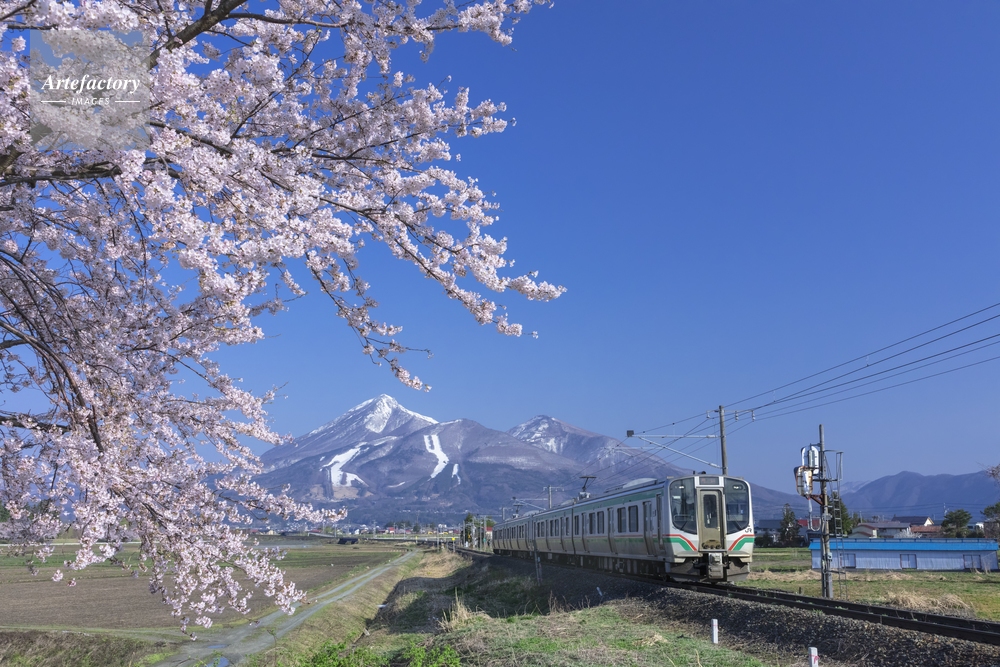 | 作品タイトル | 電車と桜と雪の磐梯山 | モデルリリース | なし | |