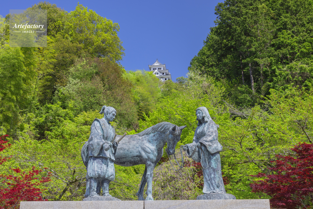 | 作品タイトル | 新緑の山内一豊と千代の像と郡上八幡城 | モデルリリース | なし | |