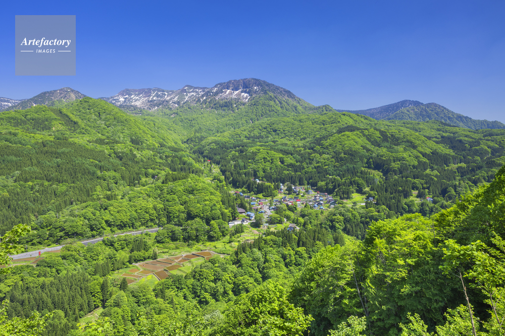 | 作品タイトル | 新緑の秋山郷の苗場山と小赤沢集落 | モデルリリース | なし | |