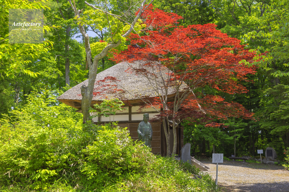 | 作品タイトル | 新緑の俳諧寺の一茶堂と小林一茶像 | モデルリリース | なし | |