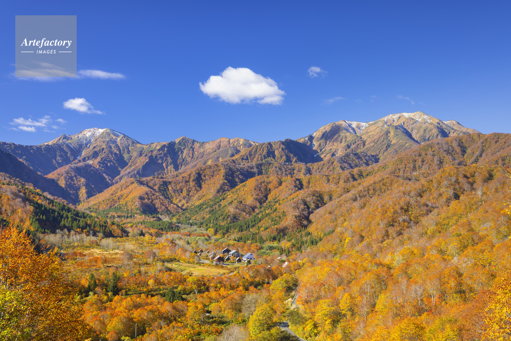 | 作品タイトル | 雪の中ノ岳と越後駒ヶ岳の紅葉 | モデルリリース | なし | |