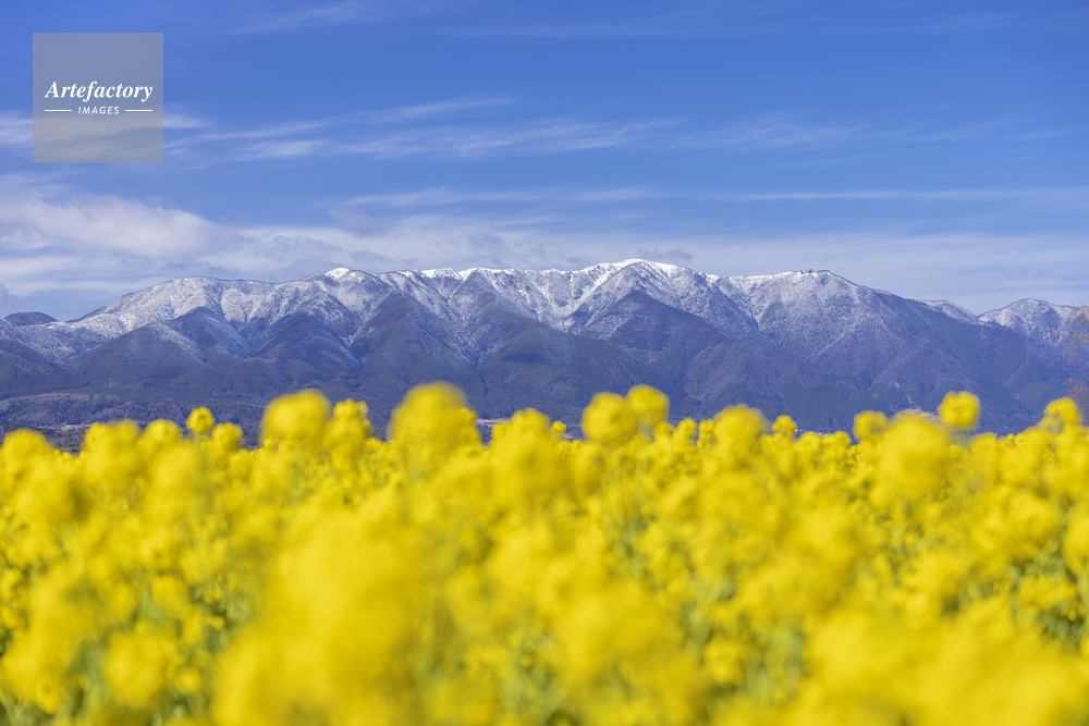 | 作品タイトル | ナノハナ咲くなぎさ公園と雪の比良山 | モデルリリース | なし | |